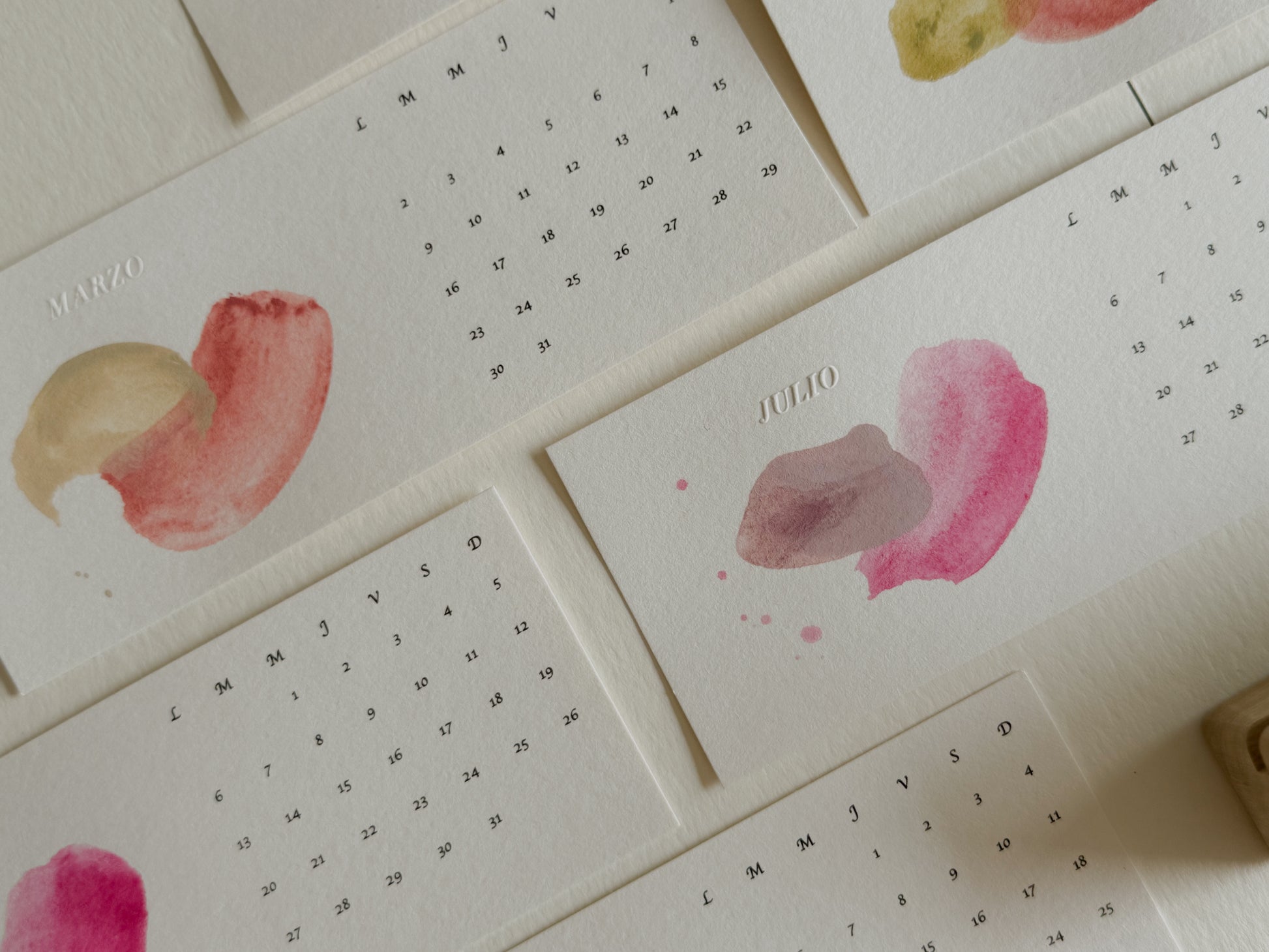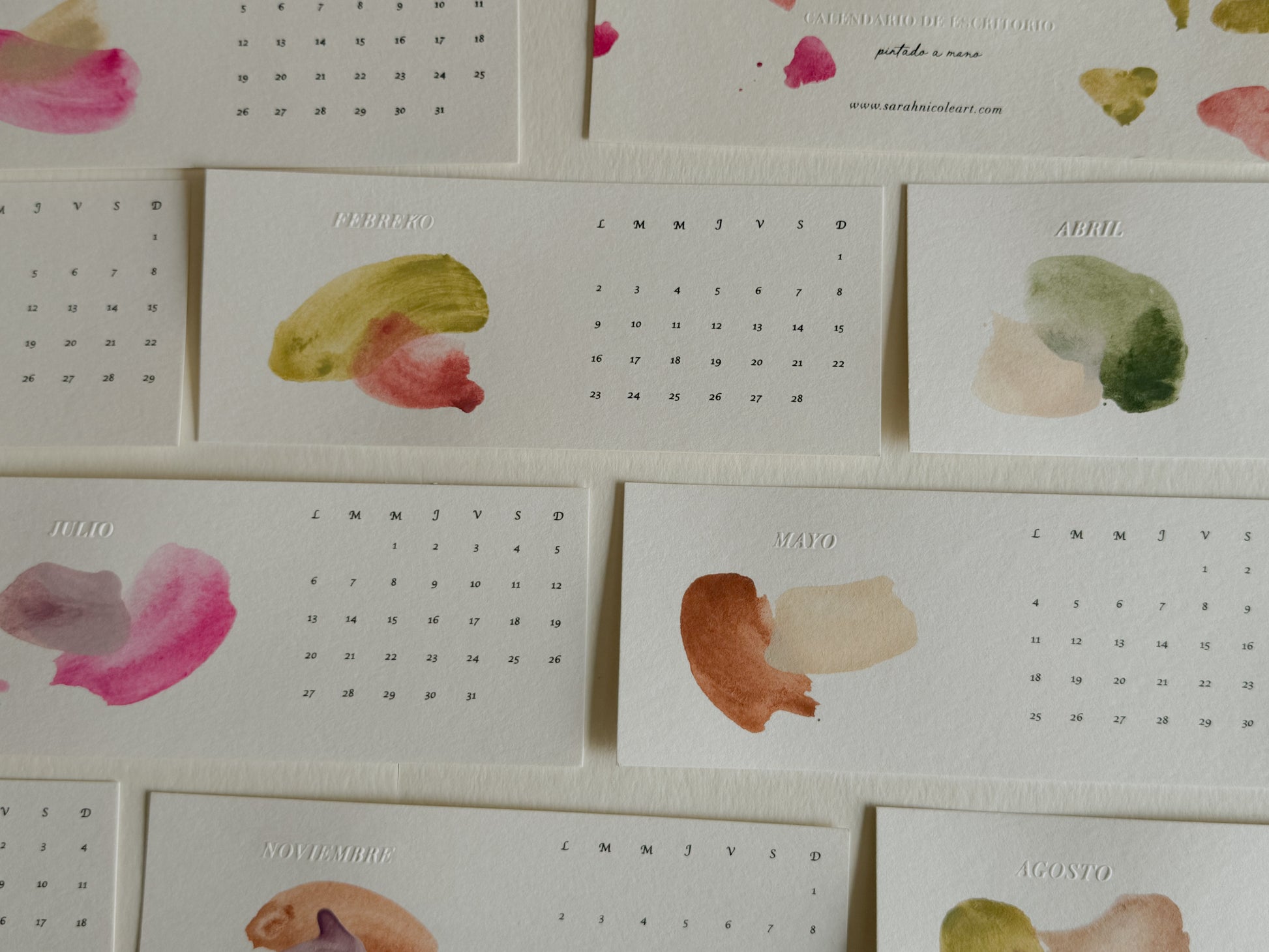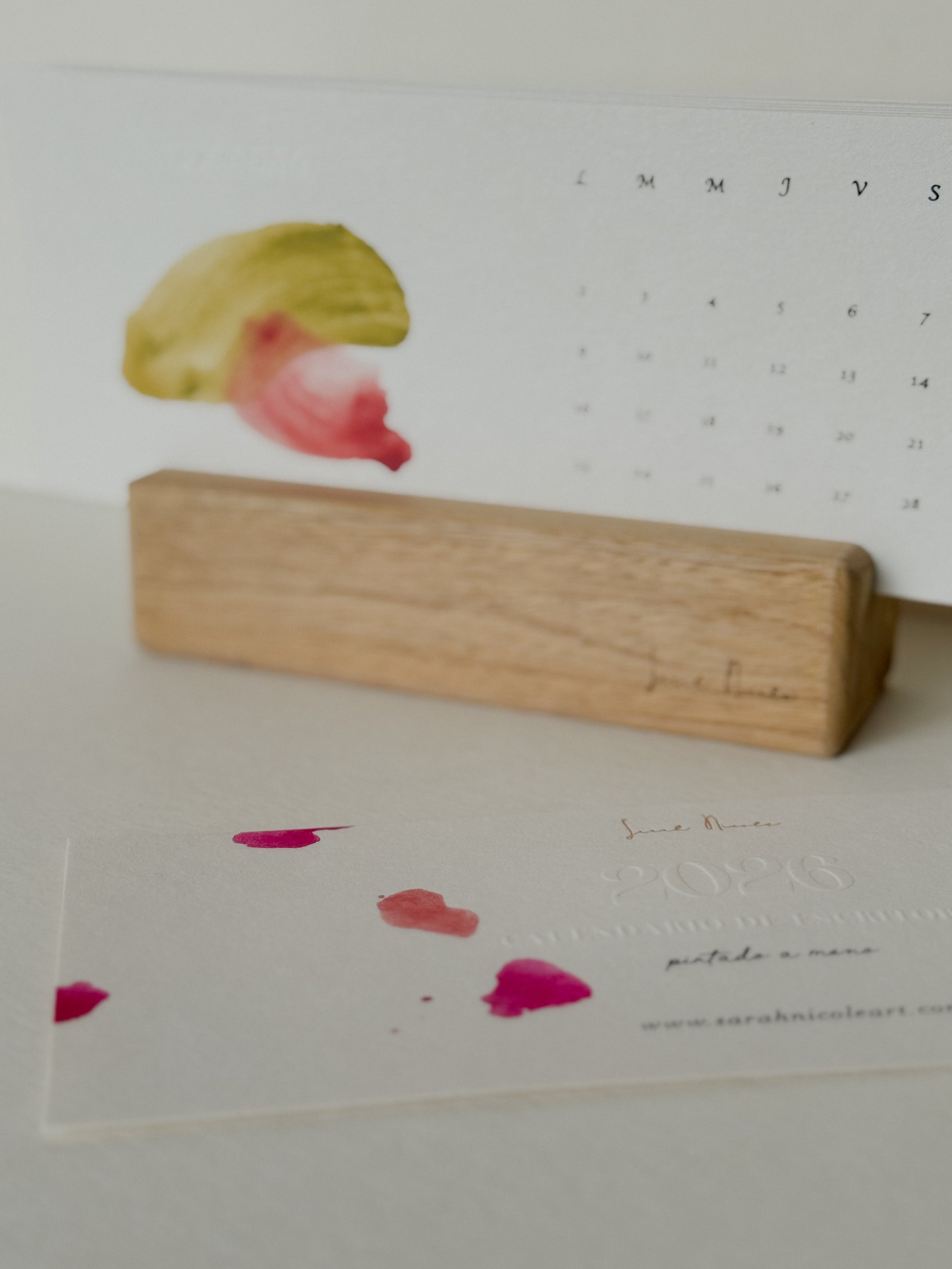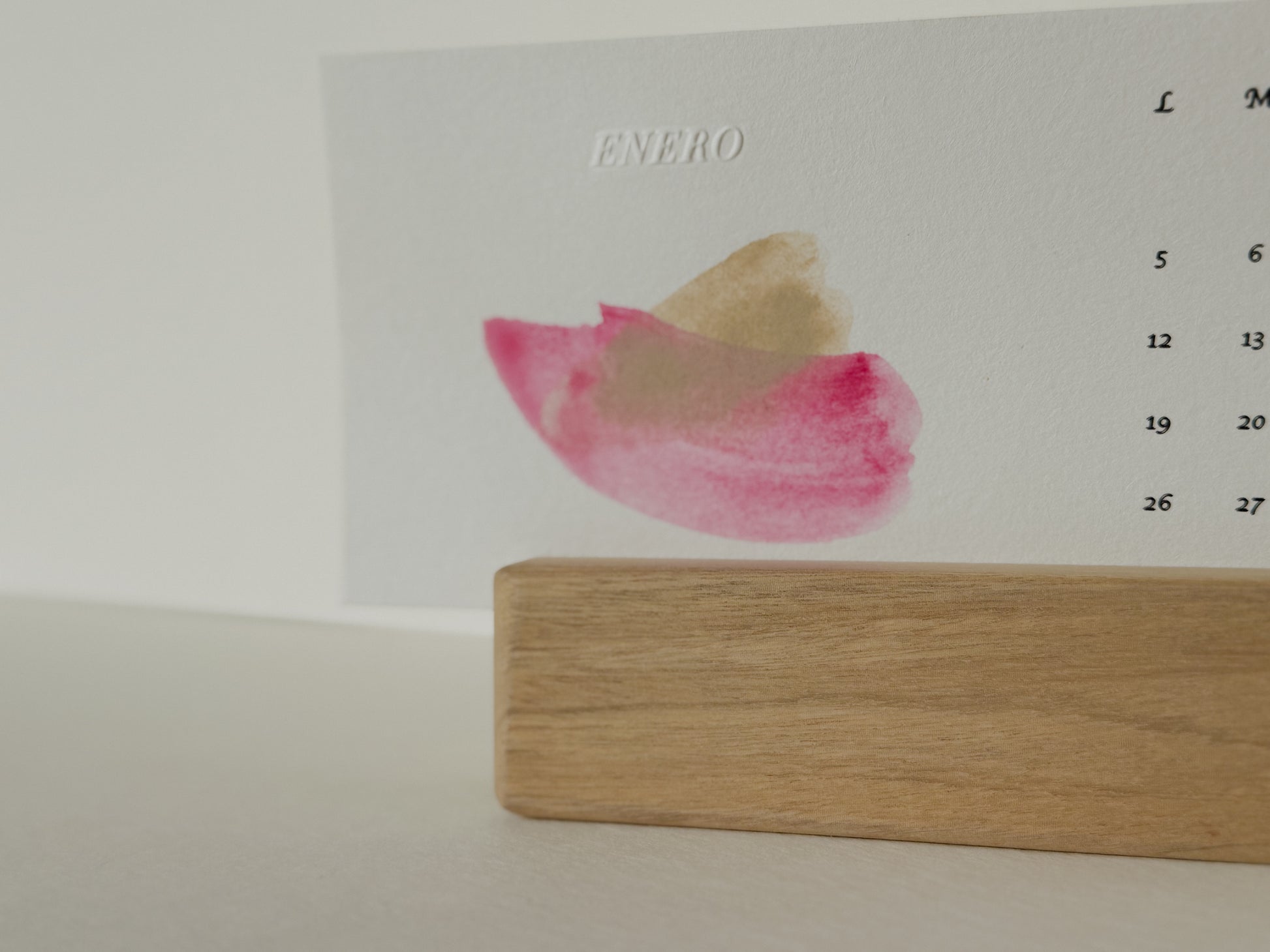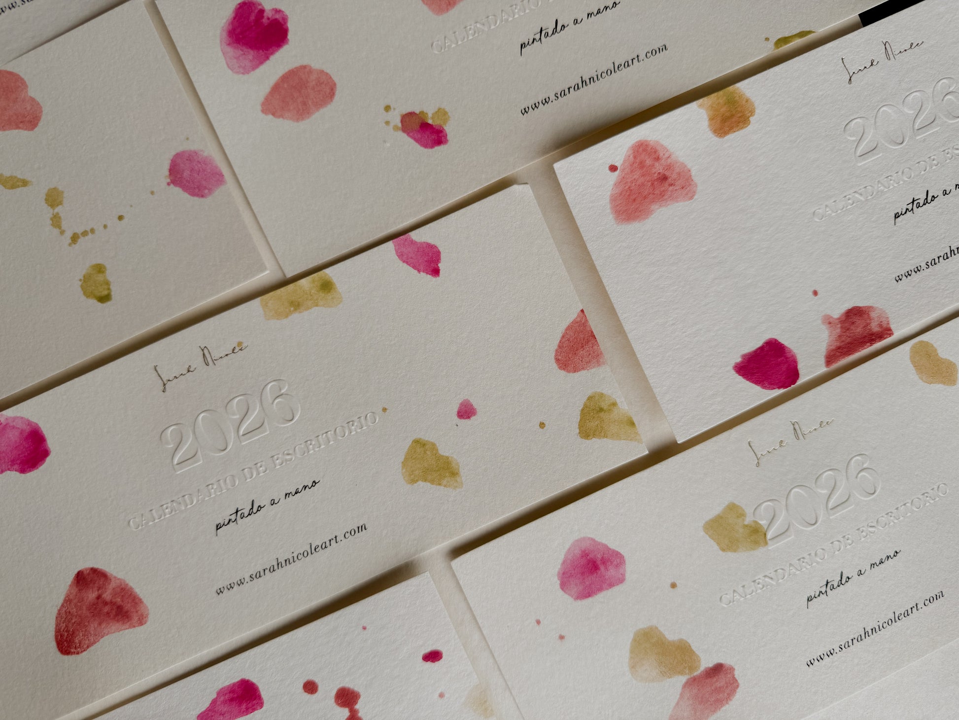 Cada página está impresa en papel de algodón con Letterpress y luego pintada a mano por Sarah Nicole, lo que convierte a cada calendario en una obra irrepetible: ninguno es igual a otro.