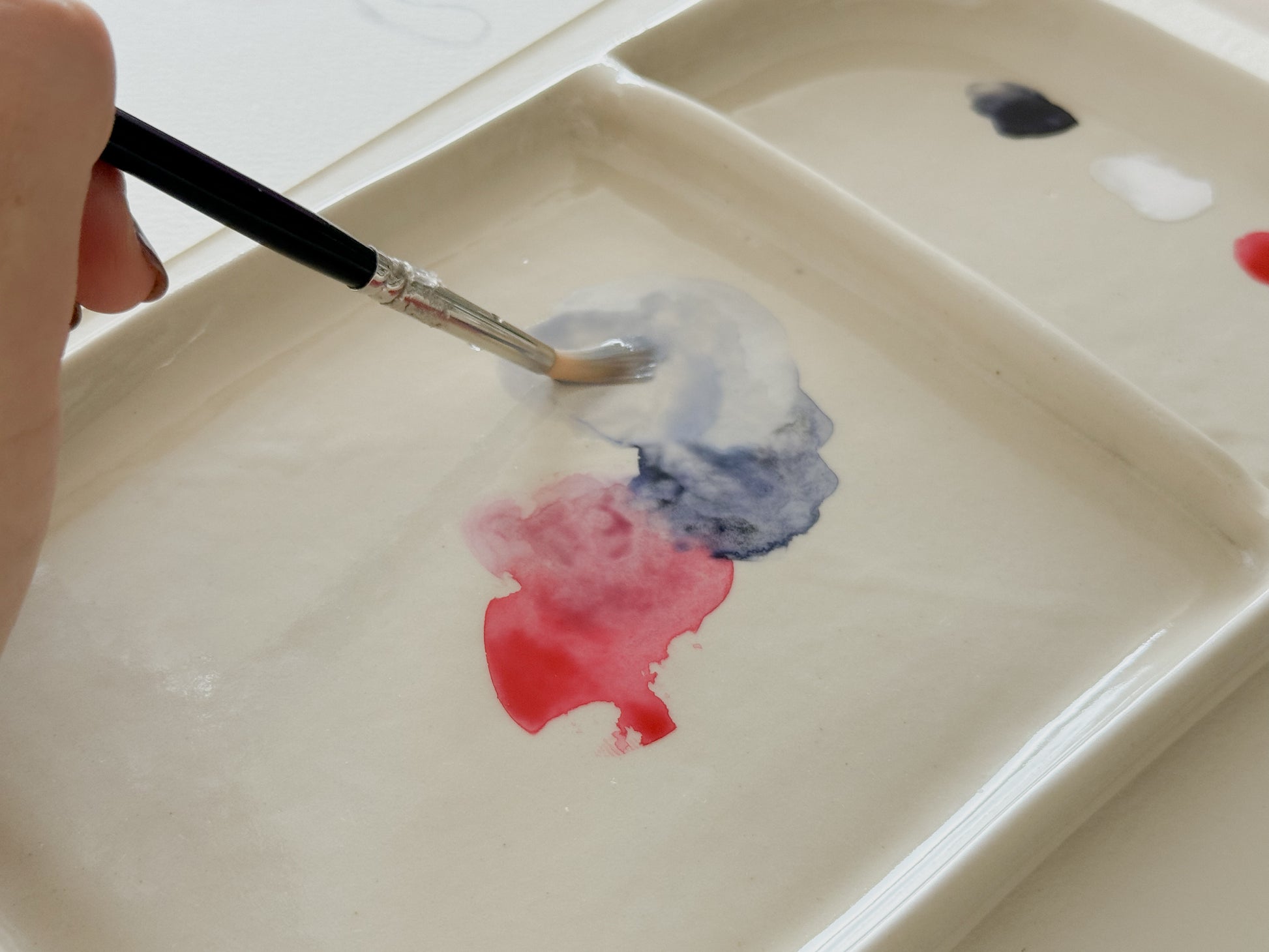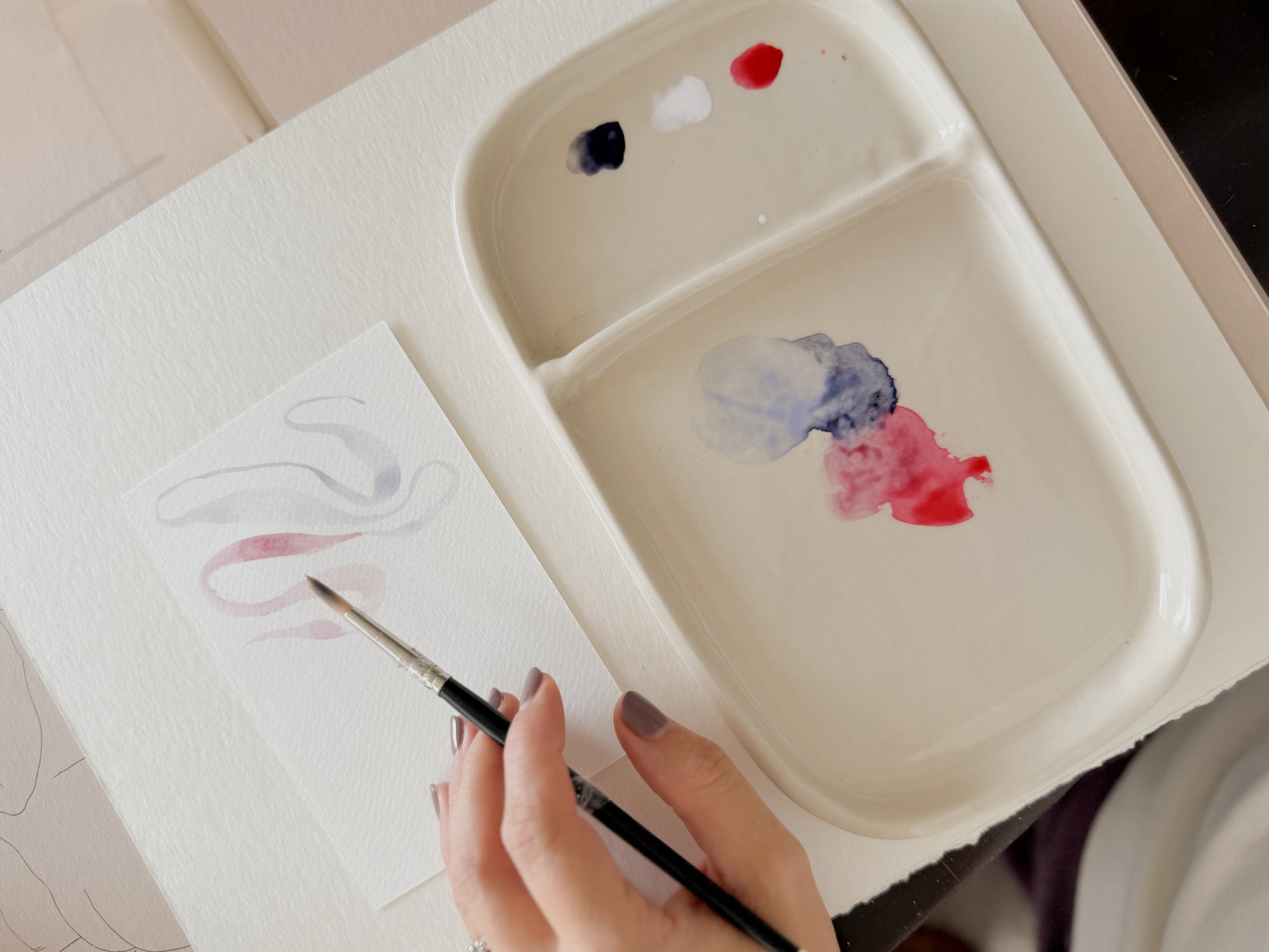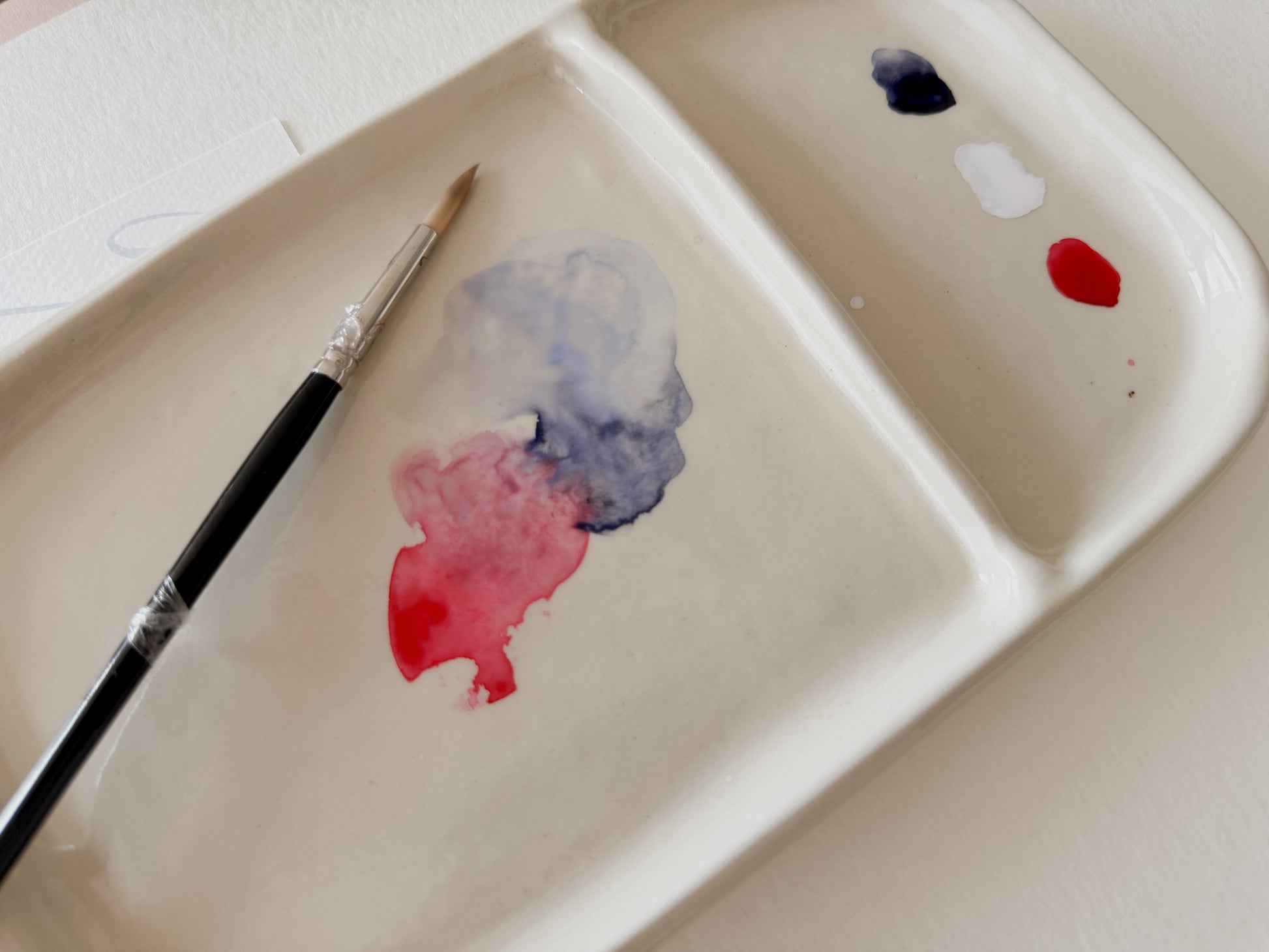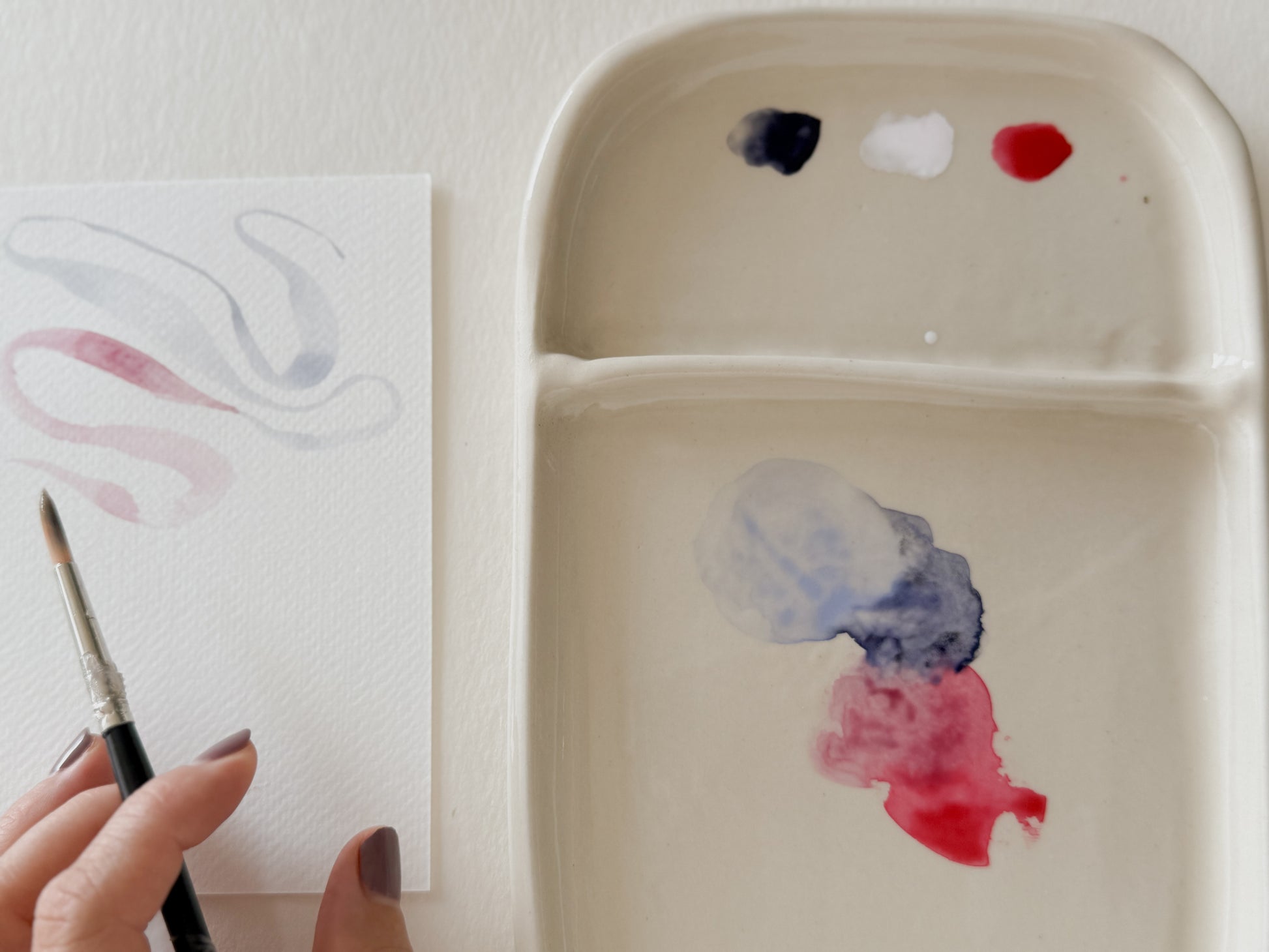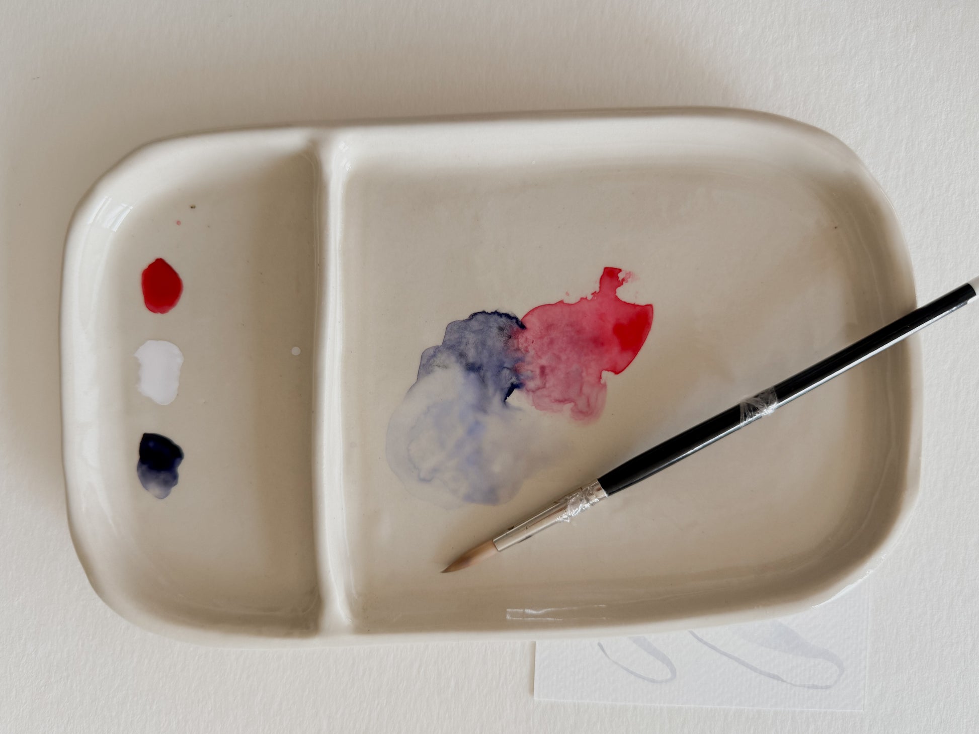Su forma suave y sus dos compartimentos invitan a mezclar colores con calma, apreciar las texturas del agua y reconectar con el proceso artístico desde la simplicidad.