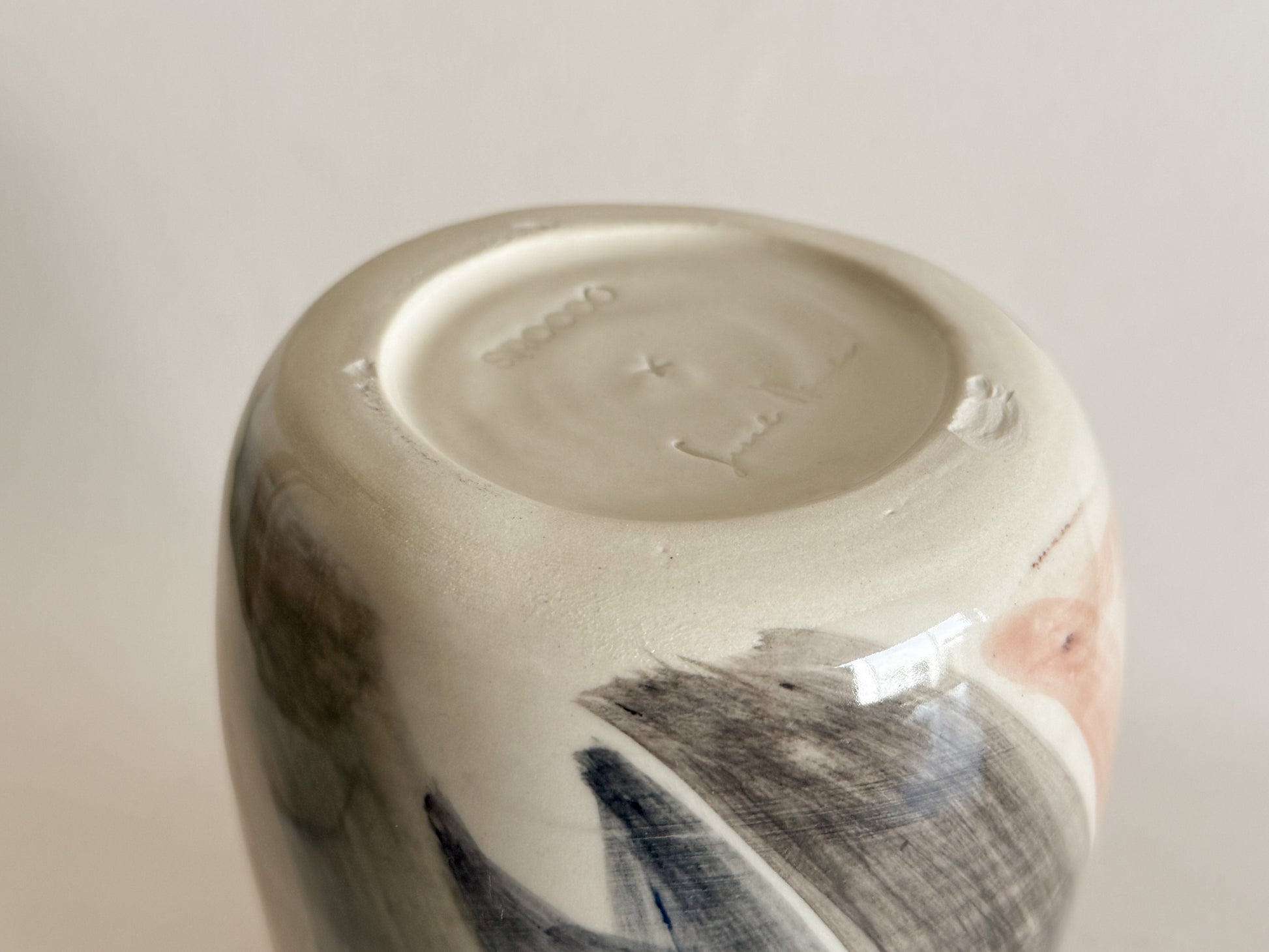 jarrón de cerámica, elaborada completamente a mano, intervenida y pintada por Sarah Nicole.
