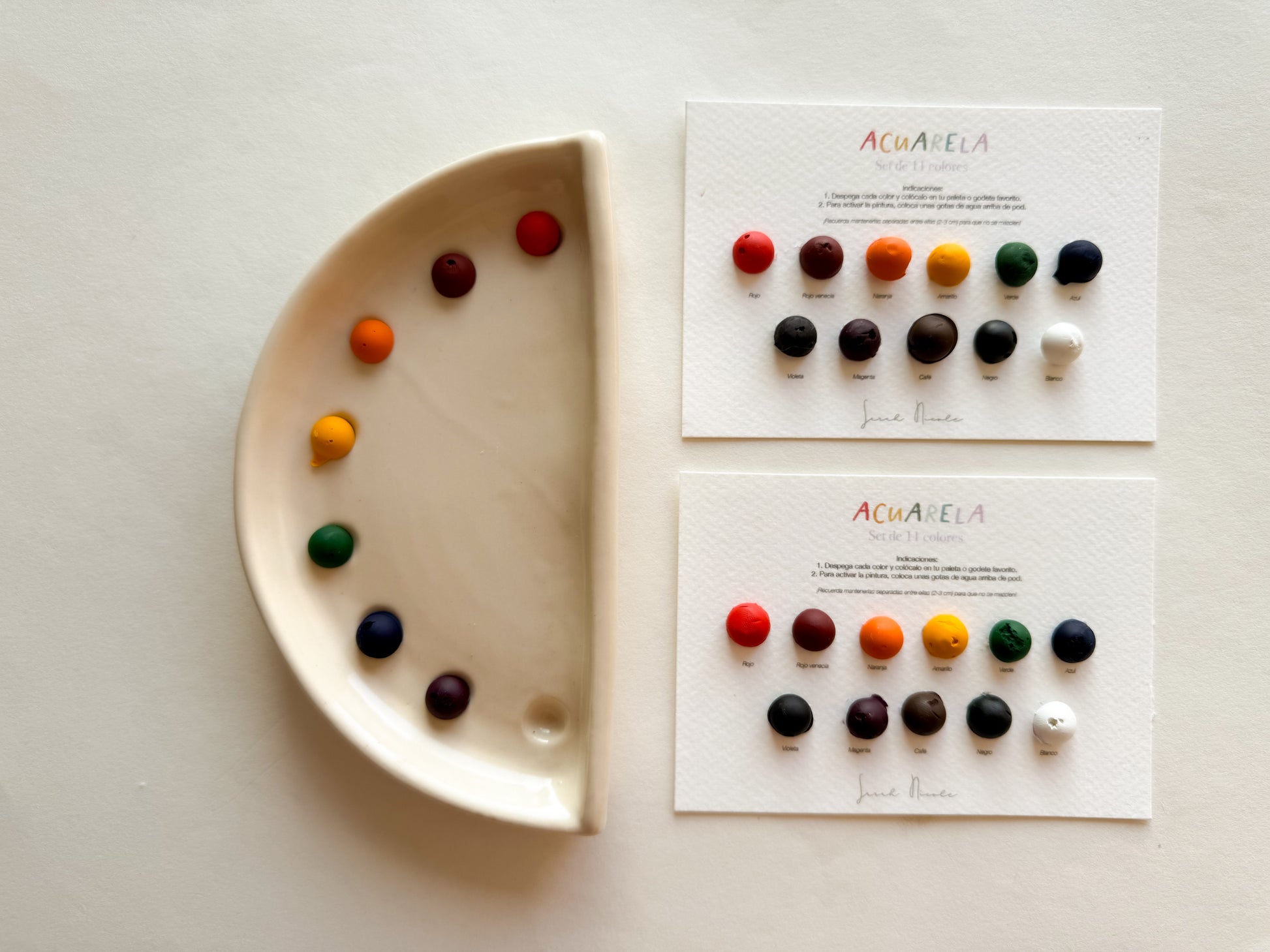 - Acuarelas: Set de 6 ó Set de 12 colores (con cualquier set puedes crear cualquier gama de color)