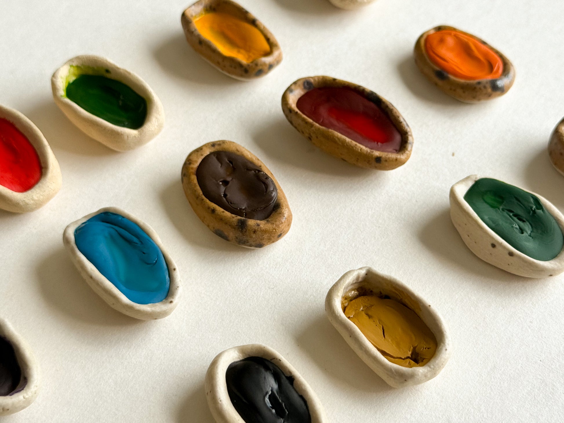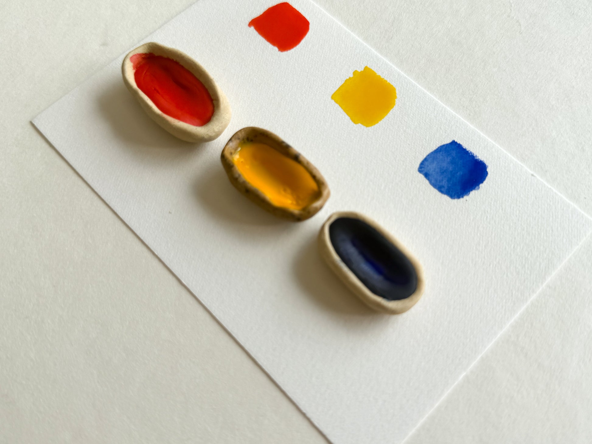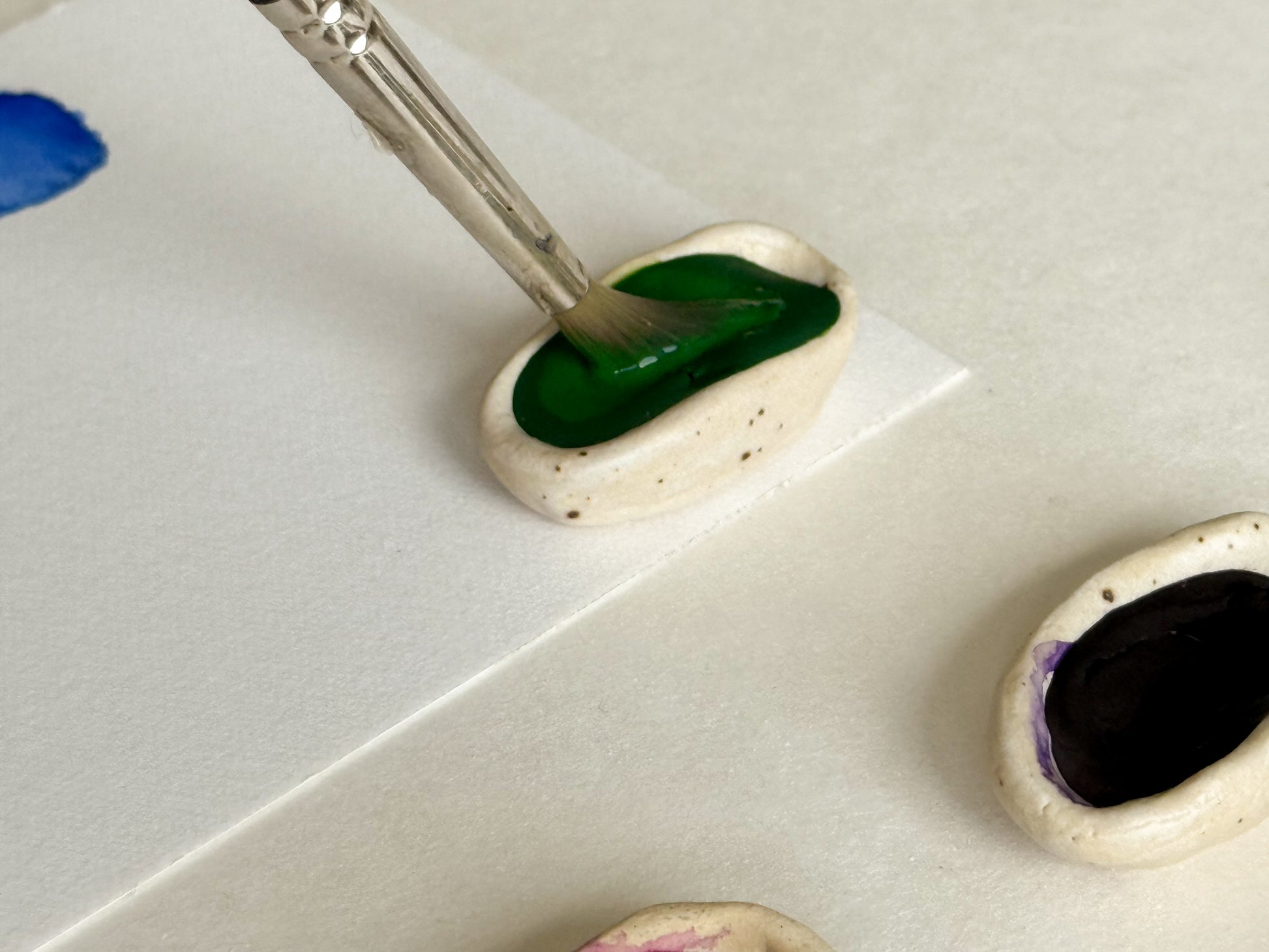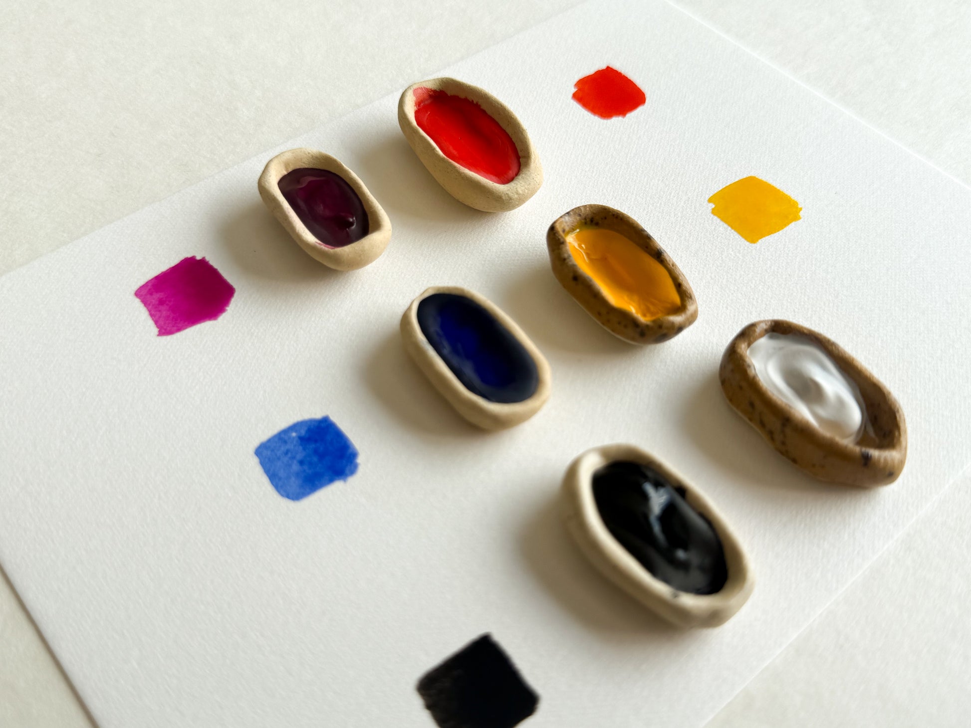 Estos pequeños cuencos están hechos a mano en cerámica y rellenos con pintura de acuarela.