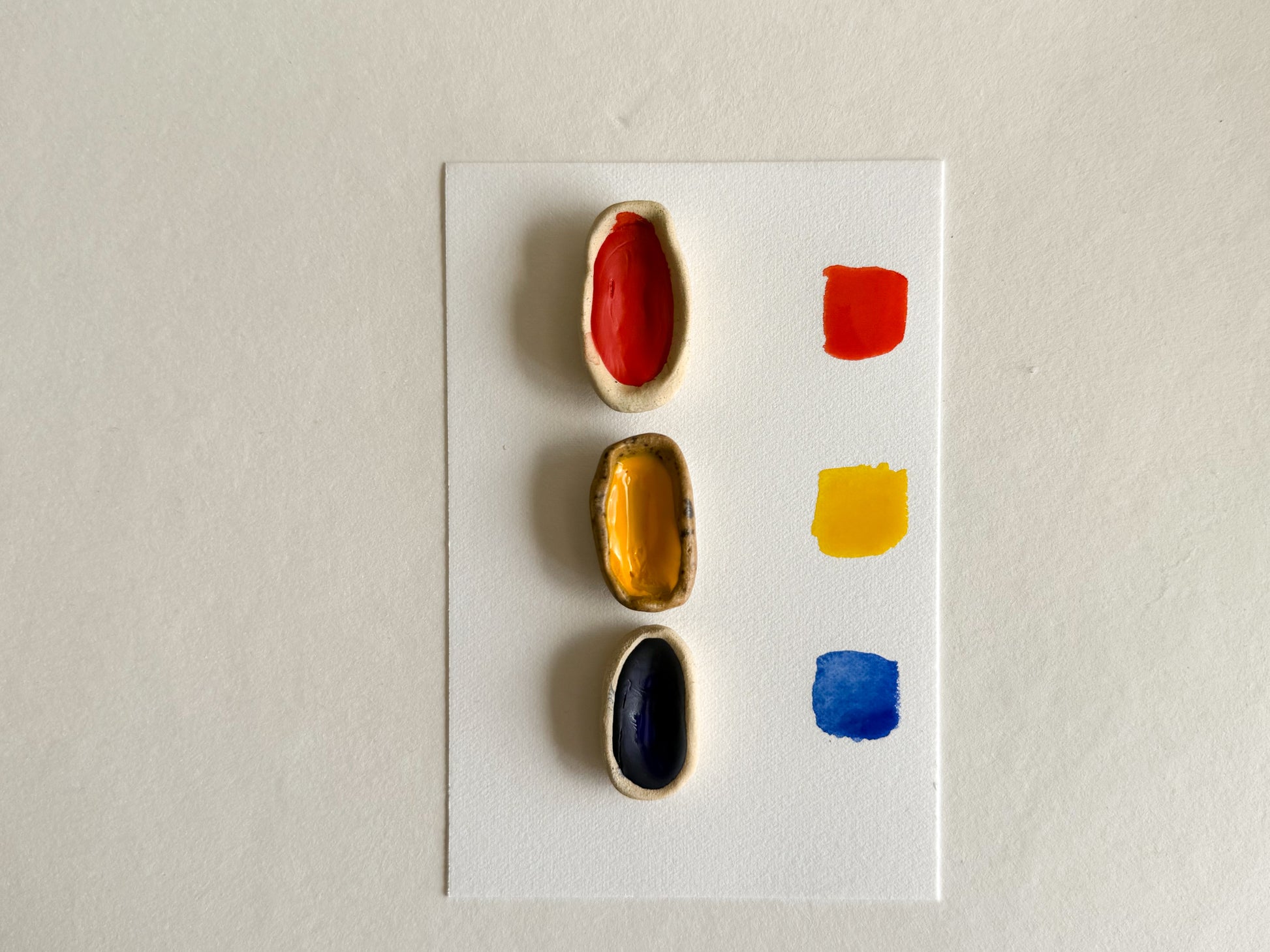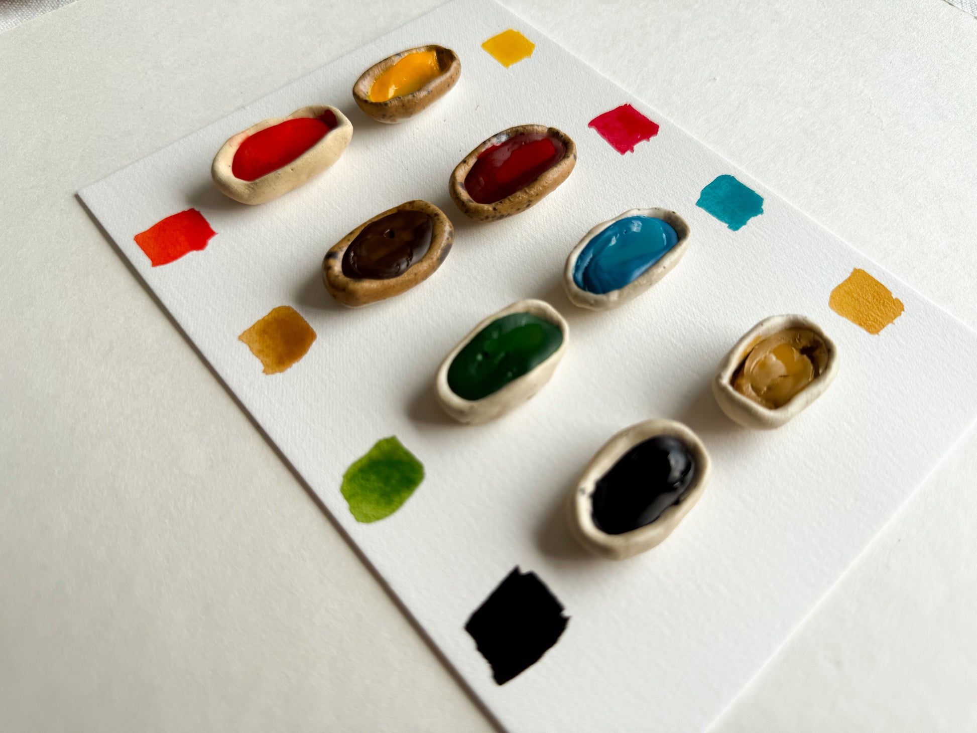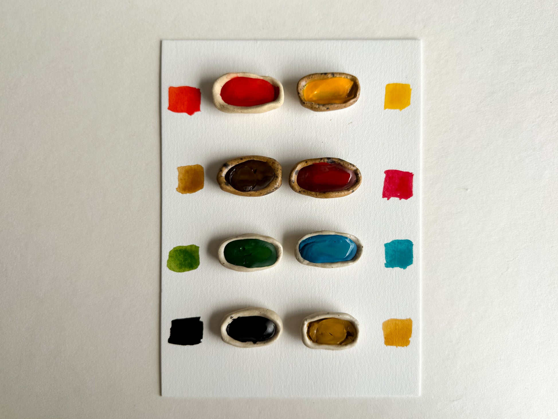 Estos pequeños cuencos están hechos a mano en cerámica y rellenos con pintura de acuarela.