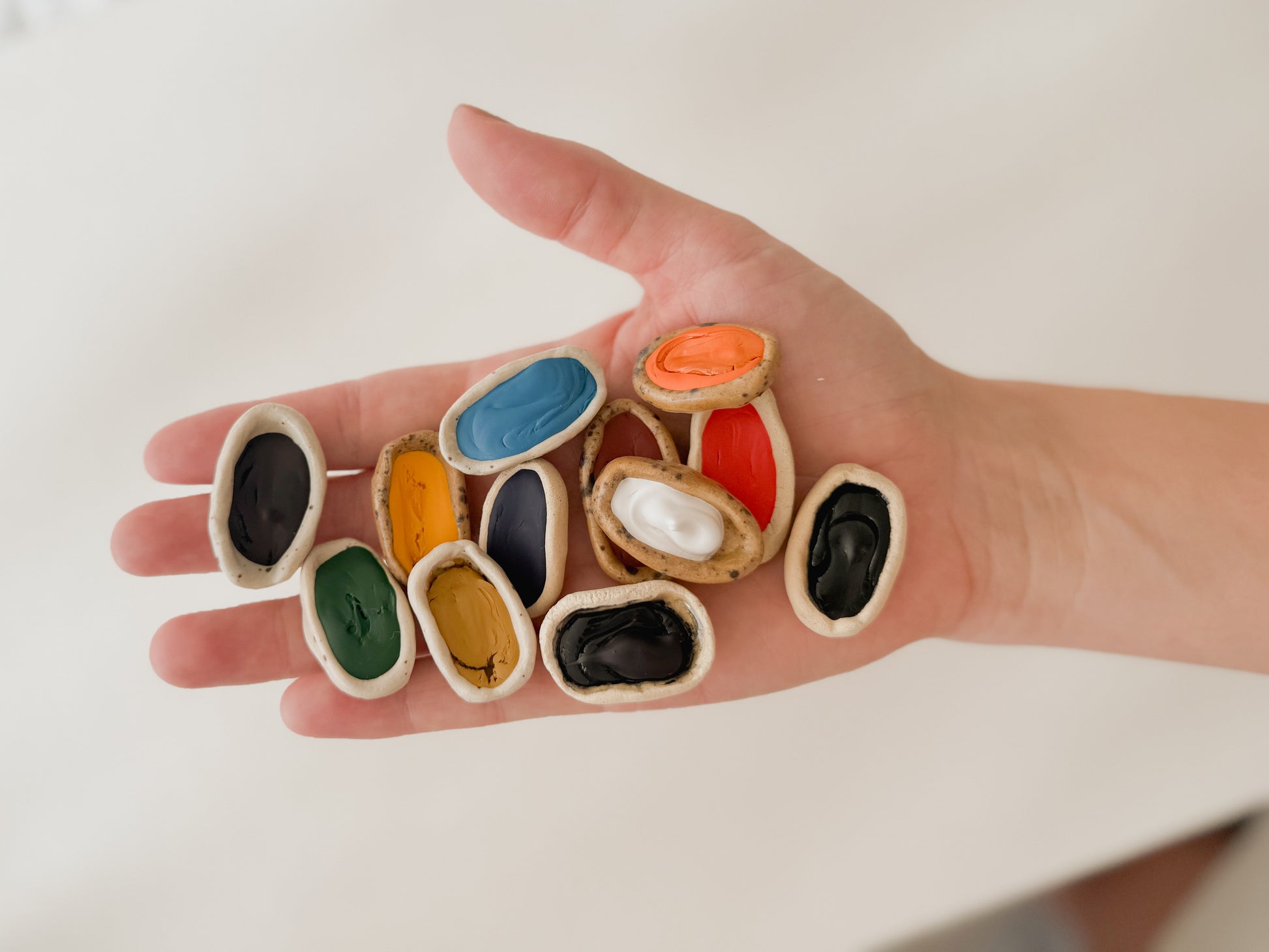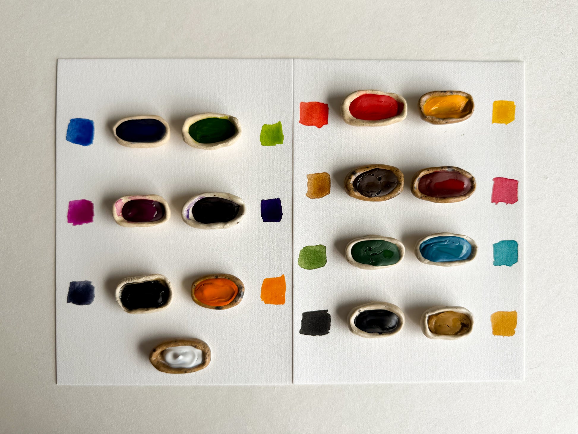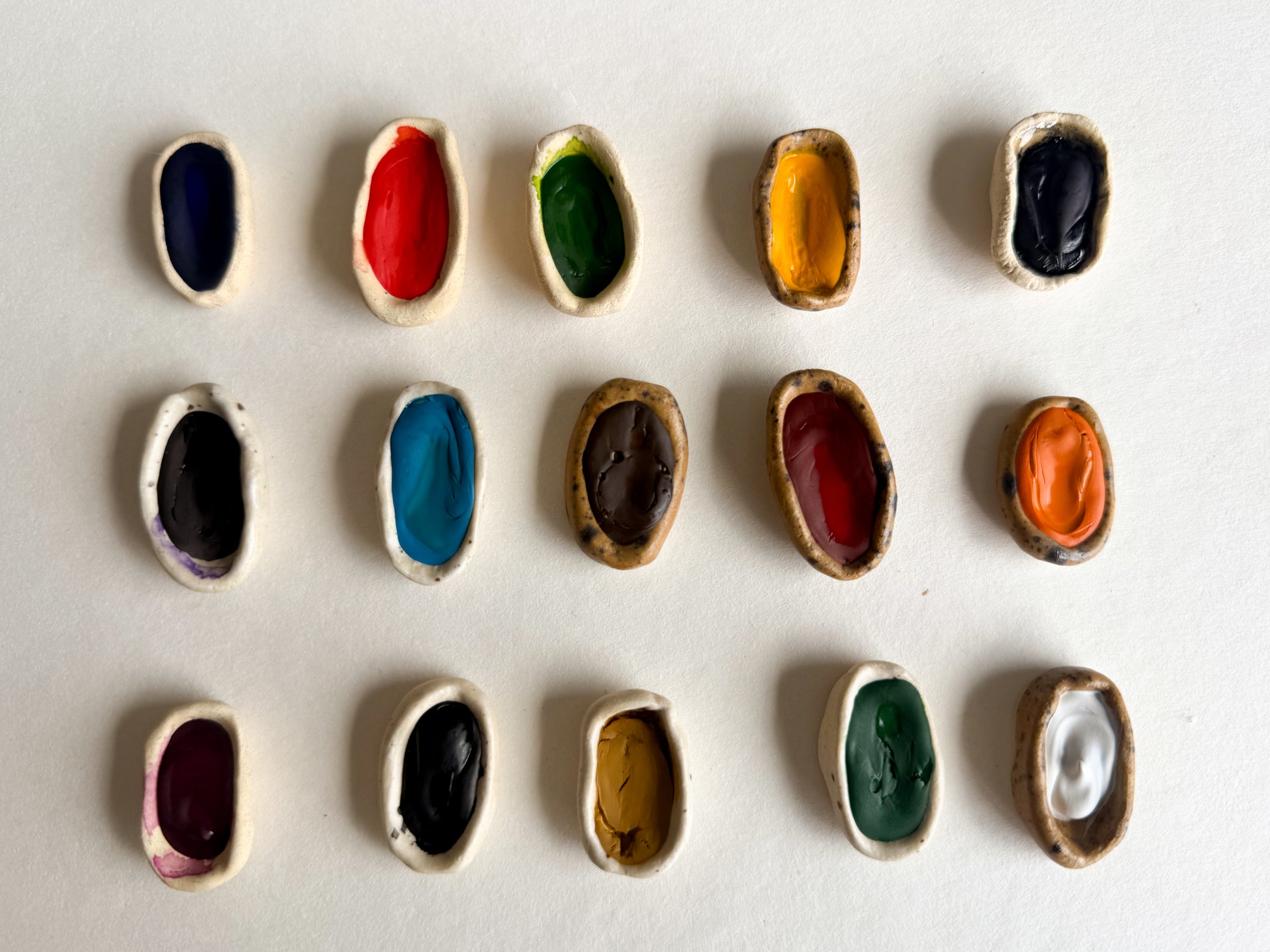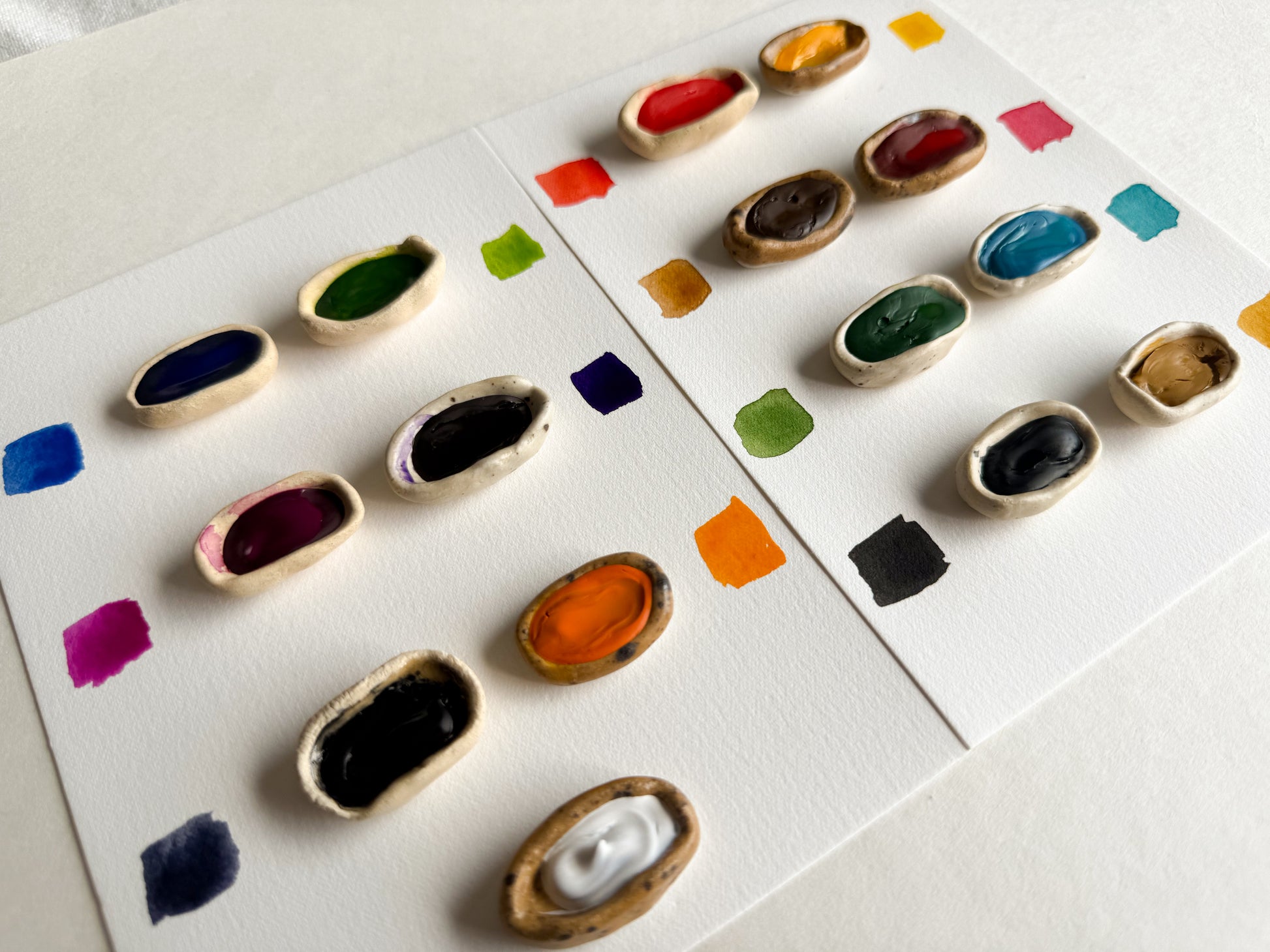 Estos pequeños cuencos están hechos a mano en cerámica y rellenos con pintura de acuarela.