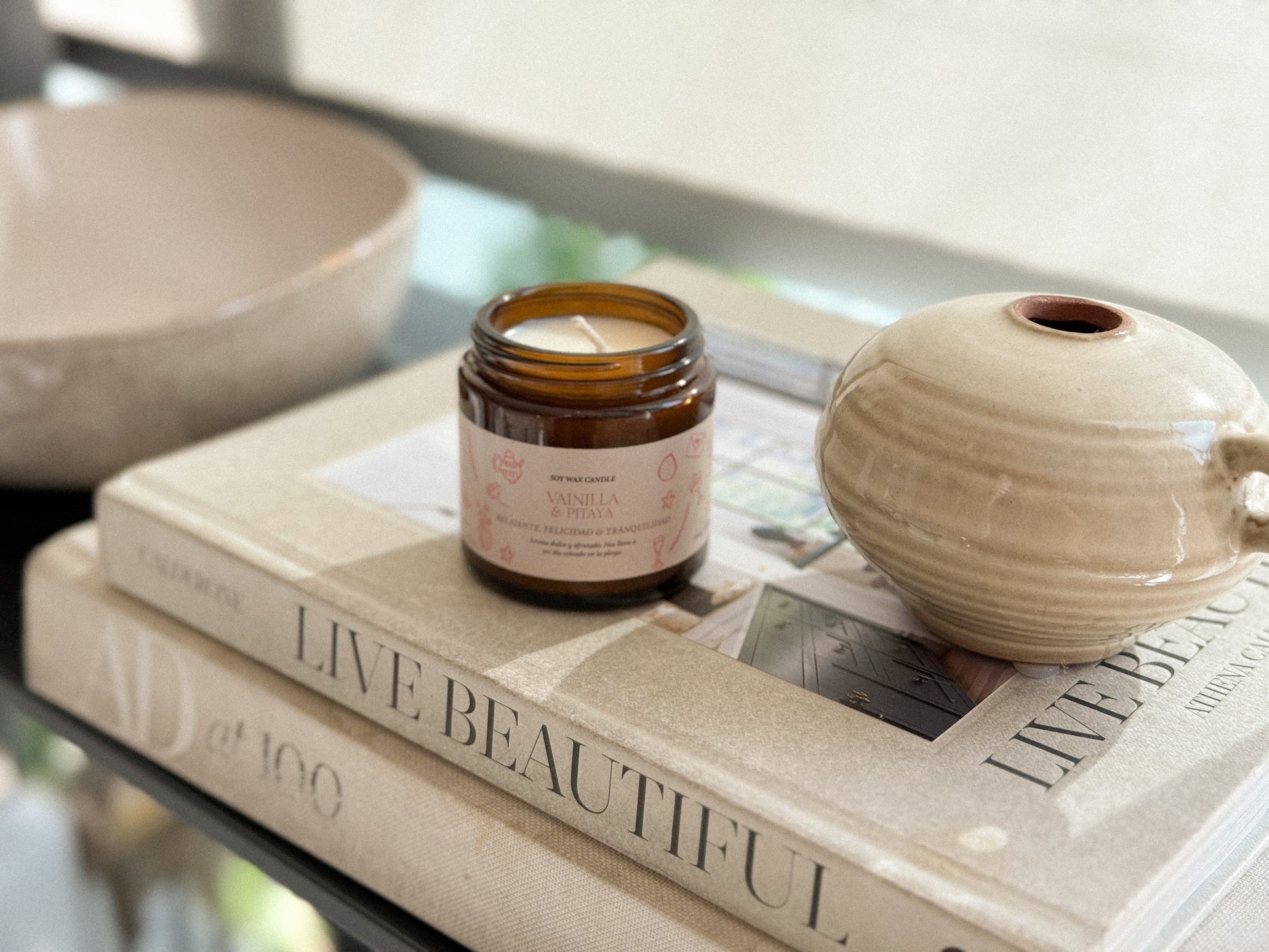 Vidrio y cera de soya